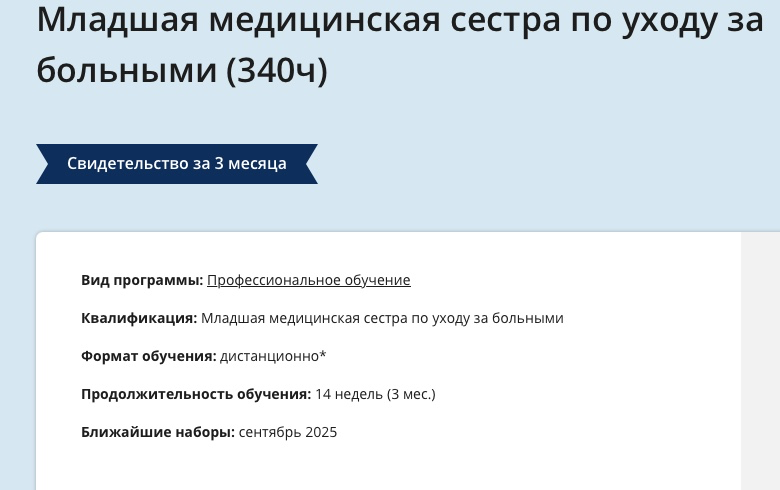 Также авторы объявления отметили, что «завершившим курсы выдается свидетельство государственного образца РФ о присвоении квалификации “Младшая медицинская сестра / младший медицинский брат по уходу за больными”».